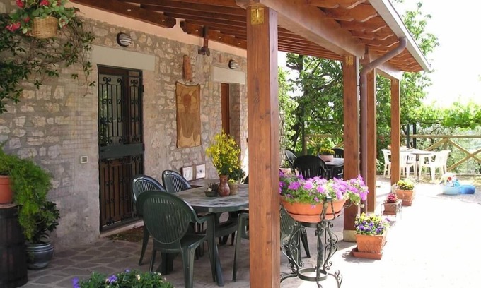 The apartment Le Terrazze with separate entrance is located on the ground floor, it has been recently completely renovated, 5 Km from historical centre of Perugia. Air conditioning and wi-fi connection. Large and comfortable, it is equipped with every convenience to make your stay enjoyable. It's consists of a lounge-kitchen with sofa bed, satellite TV and fully equipped kitchenette with convection oven and fridge-freezer. A large bedroom with double and two single beds and a bathroom with shower. Also available are an electric iron, ironing board and hairdryer. Our accomodation also offers guests a large garden with playground for kids and barbeque.A wide porch makes for fresh relaxing moments at any time of the day. Our large garden and an orchard offer those who stay the colors and flavors typical of the serene Umbrian hills.