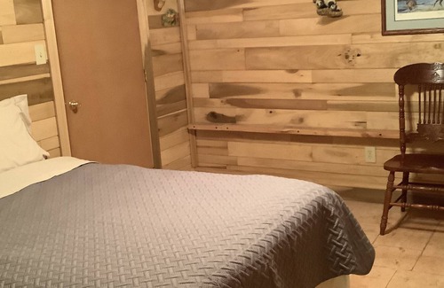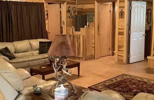 This home is the entire lower level of a large ranch style home with its own exclusive entrance. There are two bedrooms with a queen and full bed. There is one bath with a shower. There is a lot of comfortable overstuffed furniture In the huge great room. The kitchen is modern and nearly new including a full size fridge , dishwasher, microwave full size stove and oven and a double sink. Kitchen is fully stocked with dishes, pots and pans, food processor toaster, tea pitcher etc. there is no carpet which makes it great for those traveling with pets and perhaps those with allergies. We are adding items to assist with those traveling babies and toddlers knowing you have enough to pack when traveling with the Littles. We feature a very large gazebo with a ton of different styles of sedation overlooking a huge maintainability Ed yard, our property is situated on 600 acres so there is lots of opportunity to get out and explore, play out door games in fresh air and exercise your pets .