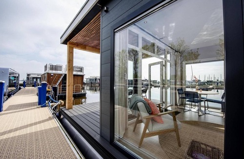 Experience the unique charm of life on the water with this spacious, bright houseboat, nestled in the beautiful Waterrijck marina on the Sneekermeer, near the picturesque Starteiland. Ideal for water enthusiasts, it offers stunning lake views and direct access to a variety of water sports. Whether sailing, canoeing, or simply relaxing on deck, your aquatic adventure begins here. Step aboard from the jetty to the welcoming ground floor, featuring two serene bedrooms. The master bedroom has a comfortable double bed with individual mattresses, stylish furnishings, and USB/USB-C charging points. The second bedroom offers two cozy single beds with similar amenities. The modern bathroom includes a shower stall and contemporary fixtures. The bright living area is perfect for unwinding, with a plush sofa, a round dining table for four, and an adjacent open kitchen equipped for meal preparation. The covered terrace extends your living space outdoors, ideal for enjoying coffee in the morning or dining by the water. Family-friendly and pet-friendly, the houseboat provides a cot and high chair for little ones, and allows one furry friend. While the terrace is not fenced, it offers a tranquil space just steps from the water.
