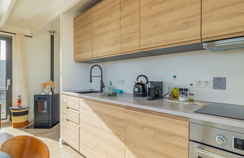 The Surla Houseboat is 15 meters long and 6 meters wide. A total area of 84m2 excluding the roof terrace. The living room and kitchen are 25m2, and equipped with 3 large sliding doors, so you always have a phenomenal view. There is a spacious living room with a couch, dining table, tv and sliding doors to the front terrace with outdoor chairs. The open plan kitchen is fully equipped with an induction cooker, fridge, oven, dishwasher, kettle and Nespresso coffee machine. There's also a table-top freezer in the utility room. The bathroom is equipped with a shower, sink and a (dry) toilet. There are 3 bedrooms on the houseboat. Two bedrooms with hotel beds (1.80 x 2.00m), especially designed for Surla Houseboats. The third bedroom has a bunk bed (0.90 x 2.00m). Via outside stairs you can go to the spacious rooftop terrace where there is a lounge set to enjoy beautifull sunrises and sunsets. Last but not least: on the back terrace is a warm outdoor shower, great after a swim.