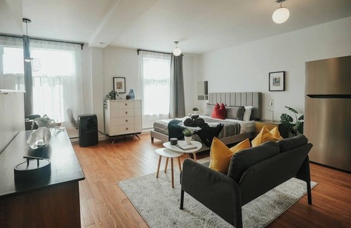 Indulge in comfort at our newly renovated large and spacious 750sqft studio nestled on Mont Royal. Ideal for solo or business travellers, this stylish space boasts modern finishings, a queen bed, high-speed WiFi, AC, a dedicated workspace, and a washer/dryer. Step out to a charming patio with a dining/coffee area to unwind. Our inviting studio is a blend of modern convenience and serene retreat, ensuring a delightful stay in the heart of the city. Your quaint urban haven awaits!