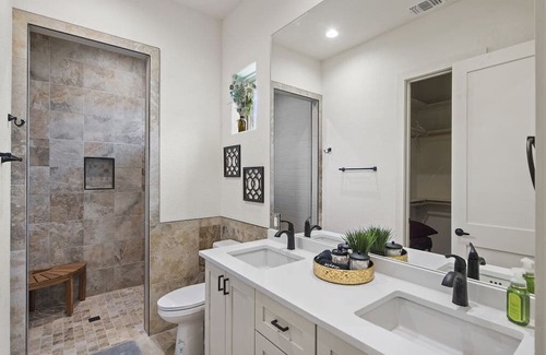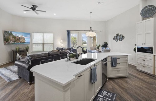 Introducing Cove West in Horseshoe Bay West, TX. This luxurious 2-bedroom, 2.5-bathroom home boasts 1,590 sq ft of modern comfort and style. The open-concept floor plan flows seamlessly between spaces, perfect for both entertainment and relaxation. The smart home also features a smart lock entrance system for security and convenience. With its prime location near the lake and other local attractions, Cove West is the perfect vacation rental for those who appreciate luxury and convenience.