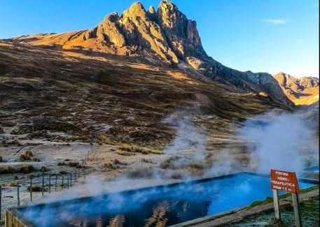 HUAYHUASH TREK HOTSPRINGS start and finish in hotsprings 10 days one night purchase valued in 10 days trekking is located in Huaraz.