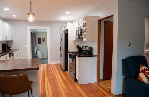 Newly remodeled, this 2 bedroom/1 bathroom historic home is fully equipped with brand new furnishings, a completely renovated kitchen, and high-speed Internet. Each bedroom contains a new mattress and a 55” flat screen smart TV, ideal for some alone time or for unwinding after a long day exploring the town. The kitchen is newly renovated with all new appliances and all the utensils you’ll need to prepare a delicious meal.