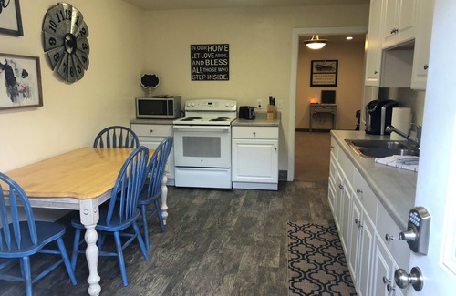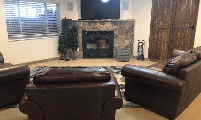 Located 25 minutes from Bryce Canyon and 40 minutes to the East entrance of Zions National Park, come enjoy what this 3-bedroom apartment has to offer. This delightful property features 1 king bed, 3 queen beds, 1 twin bed, and even a crib for the little ones. With fireplace and tons of space for entertaining and relaxing. Fully functioning kitchen, games, and ping pong table. The 2 bathrooms come equipped with everything needed. Fall in love with Panguitch and enjoy the magic it has to offer. After a long hike....sit and relax in the large hot tub.