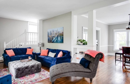 Luxuriously renovated and TONS of space make this the perfect home to host large groups coming to Louisville. 3 BR and 3.5 BA make for 3 master bedrooms basically. Everything has been updated and customized for the best stay possible. There is so much space with these huge rooms to meet and gather with your group. Convenient location between the airport and downtown, and minutes from UofL's campus. Walk to the local coffee shop 1 block away, or stroll through one of KY's oldest neighborhoods.