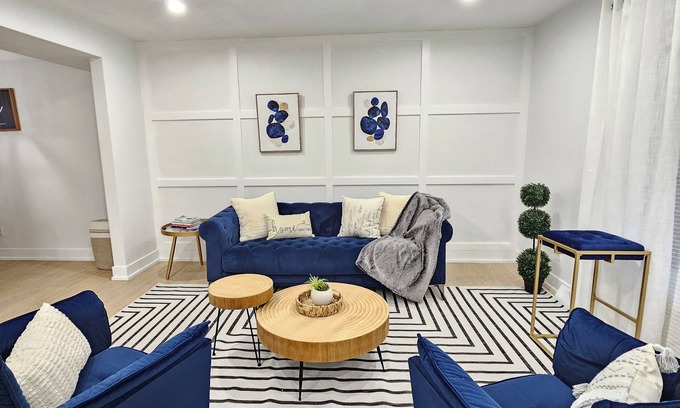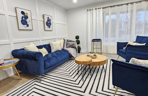 Waukegan is waiting for you at this 6-bedroom house. With 5 queen beds, 1 king bed, full kitchen, 3 large living areas, this fantastic property offers a fitness room, WiFi, games, and a washing machine. Enjoy the beautiful interior and comfortable amenities during your stay. Experience the magic of Waukegan at our house.