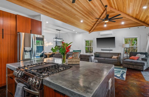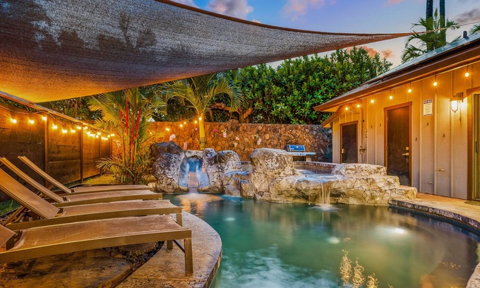 Affectionately named “The Pool House” by our 4 little ones, this house is above and beyond its typical name sake. This sprawling 3,000 sq.ft. home boasts 5 bedrooms and 5.5 bathrooms, with room to sleep at least 18 comfortably. A sleek modern kitchen, outdoor grill, 2 living room areas, and your own pool, complete with water slide and jacuzzi will be the cherry-on-top of your Hawaiian vacation! Come create lasting memories and enjoy time together!