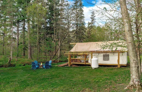 Huge tent with AC at Big Rock Creek is located in St Croix Falls. Huge tent with AC at Big Rock Creek provides accommodation, featuring Barbecue/Outdoor Cooking, Internet, Air Conditioner, among other amenities. This RV Rental features Barbecue/Outdoor Cooking, Internet, Air Conditioner, to make your stay a comfortable one.