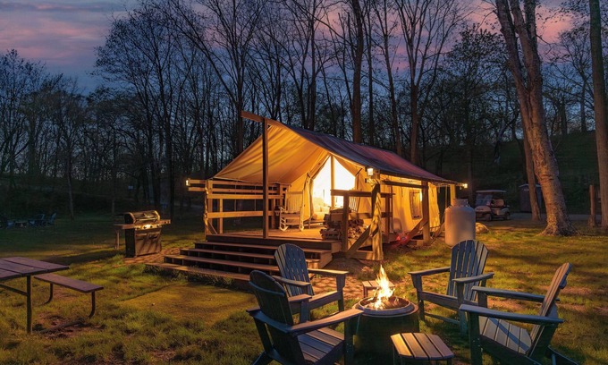 Huge tent with AC at Big Rock Creek | RV Rental in Saint Croix Falls