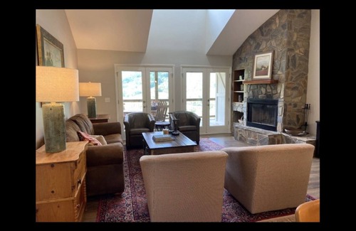 These mountain villas each have 2 bedrooms with their own private full bath. They can sleep up to 8 in 4 queen beds. The open concept living room, dining room, and kitchen is a wonderful spot to enjoy a home-cooked meal, game night, or a relaxing night in. The beautiful setting at the base of Cold Mountain will make you wish you never had to leave.