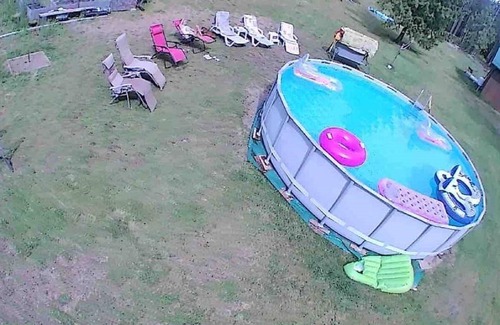 We have a very large yard with a 16’ diameter x42” deep pool surrounded by recliners and small tables for entertainment and relaxing. Barbecues, and badminton, horseshoes and baseball mitts, bat and balls. Plenty of room to play!