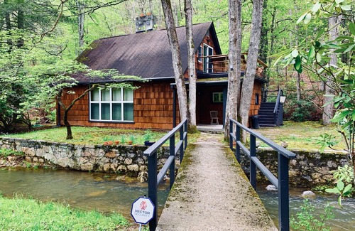 Your own island! Yes, this unique three bedroom property 'Hungry Mother Island' offers the chance to stay surrounded by a babbling creek on your own little isle of mountain paradise. Located on Hungry Mother Creek at Hungry Mother State Park. It’s just off the Back of the Dragon Trail & bordered by Hungry Mother State Park along with George Washington & Jefferson National Forest. Nearby multiple wilderness areas, superb mountain stream fishing, small lake fishing, swimming area & beach, wildlife management areas & miles of trails offer tons of natural amenities and outdoor opportunities. This newly remodeled cabin offers three bedrooms and two bathrooms with a jacuzzi tub in the downstairs bath. Eat in kitchen with stainless appliances, wood slab bar top and butcher block counter tops. Or use interesting dining room table for the whole family to sit down for dinner, all while seeing the creek flow by out of every window. Unwind on the sectional sofa in front of the stone fireplace while streaming your favorite show on the 60" TV. Relax on the rooftop patio or entertain under the lights on the stone patio while grilling out on the large stone fire/charcoal grill. The whole place is yours other than a couple of closet spaces and small areas we use for storage.