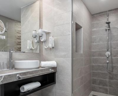 Food & DrinkMinibarBathroomPrivate bathroom, Bathtub or shower, Shower, Bathrobe, Toilet, Towels, Body soap, Toilet paper, Free toiletries, Shower cap, HairdryerGeneralHeating, Carpeted, Safe, Air conditioning, Trash cans, Smoke Alarm, Key card accessMedia & TechnologyCable channels, Flat-screen TV, TV, Satellite channels, TelephoneServicesWake-up service/Alarm clock, Wake-up serviceOutdoorsBalcony, TerraceViewViewBedroomLinens, Childrens' cribs, Wardrobe or closetAccessibilityAccessible by elevator, Upper floors accessible by elevatorPool and SpaPool towelsRoom AmenitiesNon-feather pillow, Socket near the bed |