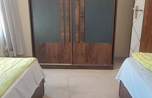 Is abig Suite in anew Resort in the middle of Hurghada city, Down town, with ahuge pool, Beach access, sandy, with lovely reefs for snorkling, with services , front desk 24/7, nice staff, the location is near everything, many restuarants around , cofe's, 10 minutes from Airport, all city facilities.