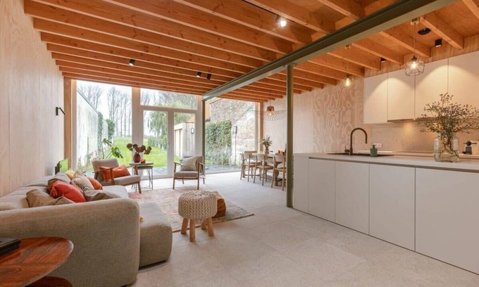 Escape to a Charming Ecologic Holiday Home! This vacation home in picturesque city of Damme was completely renovated in 2023 with 100% focus on ecological materials and techniques. We heat and cool our home with heat and coolness from the soil and surround them with wooden windows and walls behind which there is cellulose and cork as insulation, the remaining walls were finished with solvent-free paint. For the interior, we went snooping in the Eco-Shop and for the exterior, we landscaped our garden full of flower bulbs and insect-friendly plants with a central wadi that allows excess rainwater to seep back into the earth. Wondering if aquatic plants and frogs will find their way too.