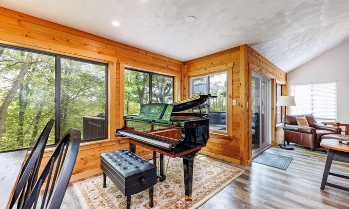 The centrally located piano fills the unit with music, creating a cinematic atmosphere that enhances your experience. With three levels, there's ample space for the group to convene or spread out as needed, ensuring everyone feels comfortable.