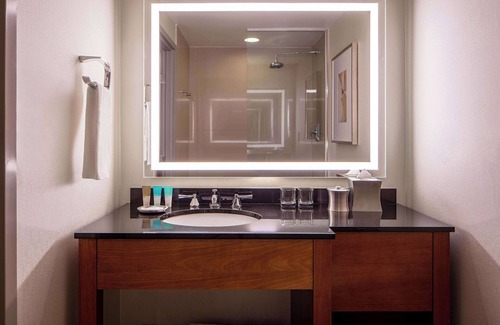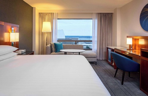 Hyatt Regency Crystal City offers 686 accommodations with iPod docking stations and laptop-compatible safes. Beds feature pillowtop mattresses. 32-inch LED televisions come with premium satellite channels, first-run movies, and pay movies. Refrigerators and coffee/tea makers are provided. Bathrooms include bathtubs or showers with rainfall showerheads, designer toiletries, and hair dryers.