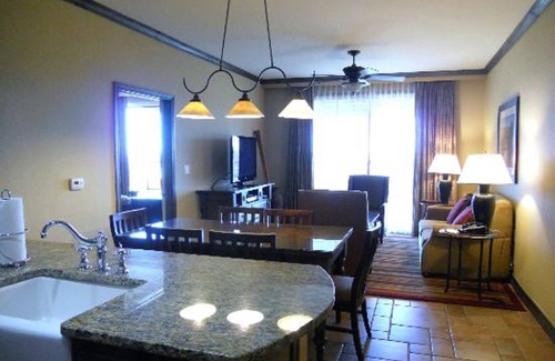 Enjoy the charm of Texas ranch-style décor in a spacious two-bedroom residential-style condominium decorated with leather furnishings, rich wood and authentic artwork. Featuring a furnished private balcony or patio, large living room with a queen-size sofa bed, dining area perfect for entertaining and a fully equipped kitchen with granite countertops and stainless steel appliances. The master suite includes a plush king-size bed and adjoining bath with walk-in shower, spa tub and double vanity. Guest bedroom furnished with two full-size beds or king bed and full-size sofa bed with full second bath. Two bedroom accommodations are suitable for up to six adults.