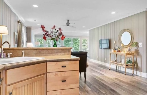 The cottage itself is light, bright and airy! Open kitchen fully stocked. Washer and dryer.