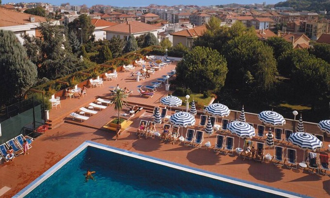 Situated at the bottom of the hill of Pietra Ligure, in a residential area, approximately 800 m from the historic centre and approximately 600 m from the sea, in a privileged, very quiet and panoramic area. Completely south-facing and immersed in the green Ligurian countryside, it has a swimming pool with a children's area, a terrace with sun loungers, a garden and a small fenced pine forest. Bar with breakfast area.