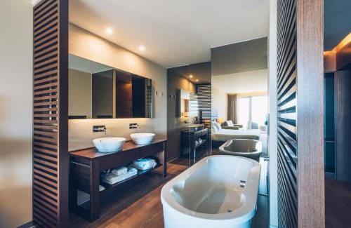 Food & DrinkMinibarBathroomBathtub, Body soap, Shampoo, Free toiletries, Private bathroom, Toilet paper, Toilet, Conditioner, Shower, Hairdryer, TowelsGeneralHeating, Trash cans, Safe, Key card access, Air conditioning, Ironing facilities, Smoke AlarmMedia & TechnologyFlat-screen TV, TV, Satellite channels, TelephoneOutdoorsBalcony, Outdoor furnitureLiving AreaDeskServicesWake-up serviceBedroomWardrobe or closet, LinensViewSea viewAccessibilityAccessible by elevator, Upper floors accessible by elevator, Entire unit wheelchair accessibleRoom AmenitiesDrying rack for clothing, Non-feather pillow, Socket near the bedPool and SpaPool towels |