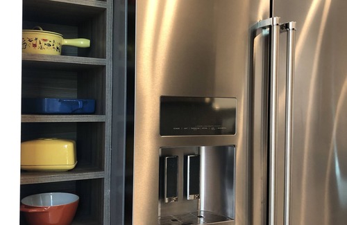 Furnishings by Room&Board, Mitchell Gold/Bob Williams, Blue Dot . Full size washer and dryer.