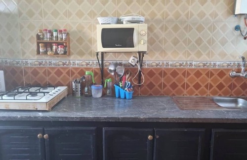 This 2-bedroom house in Fnideq is perfect for your escape to the charming city. With 1 queen bed and 1 twin bed, guests will find comfort in this lovely space. The living room also offers an additional sleeping option with a cozy sofa bed. AC and a washing machine are available for convenience. Experience the magic of Fnideq at our adorable house.