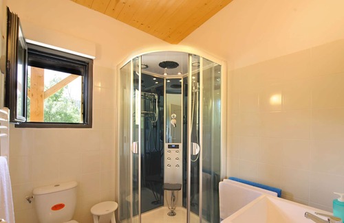 The jacuzzi is located under the trees, near the dining room and not far from a shower and toilet area. It is equipped with led lamps and can therefore be used in the evening. The water, treated with chlorine, is renewed every weekend.