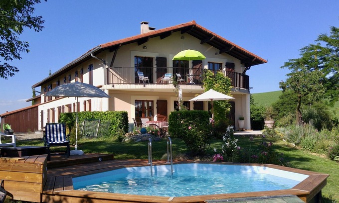 This spacious, ground-floor, self-contained, 156 sq m apartment is part of a large, beautifully-restored farm house. Huge garden and panoramic views of the Pyrenees, but close to a medieval village and only a few minutes from the A64 motorway.