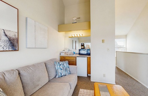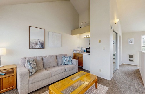 Soak up stunning harbor views and coastal relaxation in style at this adorable studio condo right on the water! Start each day on the furnished balcony as you breathe in the salty air and watch the sunrise over the Pacific Ocean. Inside, a microwave and mini-fridge are ready to assist in quick snacks. Though this is a studio, the sofa separates the space to create a living area to watch TV, and groups of four can easily call this space home, making it ideal for small families or groups of friends to enjoy! When days heat up, don't hesitate to take a dip in the shared pool or simply walk along the harbor at sunset to end days on a dreamy.