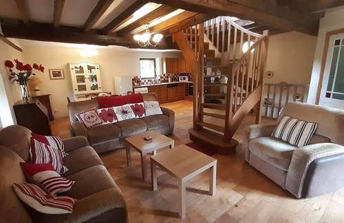 The gite is on 3 levels. The main entrance opens into a large lounge/dining room/kitchen with a separate shower room/WC.