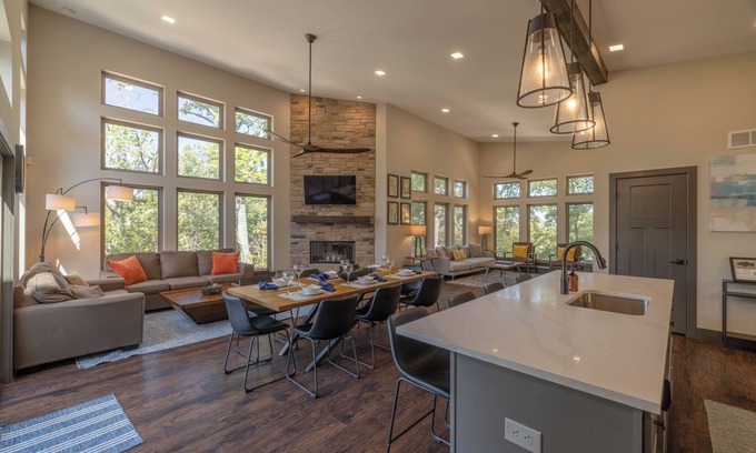 Escape to the ultimate luxury treehouse retreat, where the natural beauty of the woods meets elegant comfort. This stunning 3-bedroom, 2-bath vacation home, nestled high above a private, wooded lot, offers the perfect getaway for up to 11 guests. Imagine waking up in the primary suite, complete with a king bed, private access to the deck, and your own en-suite bathroom. With oversized windows framing breathtaking views of the valley below, the open floorplan of the living area allows you to feel immersed in nature without sacrificing any modern luxuries.