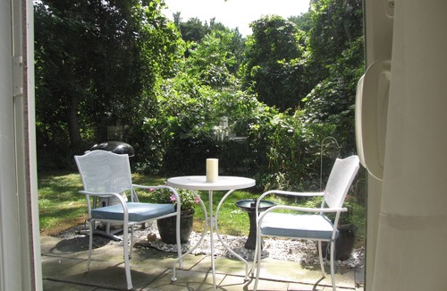 Beautiful cottage on Cape Cod, a wonderful experience, located in an area free from crowds, but with close proximity to all that the Cape and Islands have to offer. Come and relax with a glass of wine as you sit on your patio in your charming cottage. Located less than 5 minutes from Route 6, you are in a central location with easy access to Hyannis and the beautiful towns and beaches of the Mid Cape area, yet also close in either direction to the Outer Cape, the Lower Cape or the islands of Nantucket and Martha's Vineyard. Your cottage getaway is tucked away at the rear of our property lot in West Barnstable, Massachusetts in a lush garden setting. You will be less than a 4 minute drive from Sandy Neck Beach which includes 4,700 acres of beaches, dunes, maritime forests, and marshes filled with many recreational opportunities. Located in a gorgeous and peaceful countrylike setting across from an old blueberry farm, our cottage has been totally and lovingly very recently renovated and redecorated with new appliances and furnishings. The cottage has a large living room/dining room, kitchen area and bathroom on the first floor. Sliding doors lead outside to your private garden patio facing the woods. On the second floor is a very large bedroom with twin beds which can be put together to form a king sized bed, if desired. (bedding for either twin beds or king bed will be provided.)