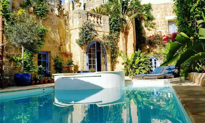 IL KIOSTRO is a historic 350 year old expertly converted Maltese farmhouse, retaining all its original features such as "Xorok", "Kileb", arches, nooks, niches, Maltese flagstones, a spiral staircase made of stone “garigor” and birth rooms. Professor Stefano Zerafa, a Maltese academic of the 1800’s and the person who identified the Maltese national plant "Widnet il-Bahar" as endemic to Malta, lived in this house. This home is impeccably furnished to high standards with 3 guest bedrooms all with an en-suite shower, a large hall with a sitting and a dining area, a picturesque authentic mill room that serves as living quarters, a beautiful garden with pool and Jacuzzi, a lovely sun terrace, an ‘al fresco’ dining and BBQ area and an internal yard which contains a herb garden.