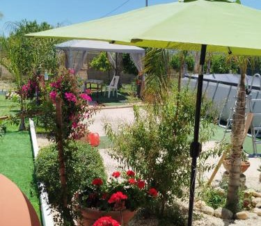 BathroomTowels, Hairdryer, Toilet paper, Shampoo, Toilet, Free toiletries, Towels/Sheets (extra fee), Shower, Body soap, Bathtub or showerMedia & TechnologyFlat-screen TV, TVGeneralLockers, Private entrance, Trash cans, Heating, Mosquito net, Key access, Fire extinguisher, Air conditioningKitchenCleaning products, Stovetop, Coffee machine, Refrigerator, Wine glasses, Washing machine, Kitchen, Dining table, Kitchenette, MicrowaveOutdoorsBarbecue, Patio, Outdoor furniture, Outdoor dining area, Private poolLiving AreaDining area, SofaViewView, Garden view, Inner courtyard view, Pool viewBedroomWardrobe or closet, LinensAccessibilityHearing accessible, Entire unit located on ground floorBuilding CharacteristicsDetachedRoom AmenitiesDrying rack for clothing, Clothes rack, Socket near the bed, Non-feather pillowPool and SpaPool with a view, Shallow endFood & DrinkBottle of water |
