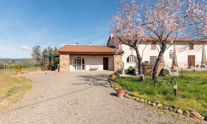 Beautiful, cosy house "Il Mondanespole", 2 storeys, surrounded by meadows and fields. 4 km from the centre of Scarlino, 3.3 km from the centre of Scarlino Scalo, in a sunny position, 7 km from the sea, 7.5 km from the beach, located by a road, in the countryside. Private: property, large garden (fenced) with meadow, swimming pool (above ground) (2 x 4 m, depth 120 - 120 cm, seasonal availability: 15.May. - 15.Sep.). Garden furniture, barbecue house. In the house: washing machine. Parking on the premises. Grocery 3.5 km, supermarket 3.8 km, restaurant 3.5 km, bar 3.5 km, bakery 3.8 km, bus stop " Bivio Col Di Sasso" 500 m, railway station "Scarlino" 3.7 km, sandy beach "Cala Violina" 10 km. Marina 7 km, golf course (18 hole) 10 km, surf school 11 km, minigolf 13 km, riding stable 7 km, walking paths from the house 1 km. Nearby attractions: Follonica 11 km, Castiglione della Pescaia 23 km, Massa Marittima 19 km, Baratti 38 km, Punta Ala 23 km. Well-known lakes can easily be reached: Lago dell´Accesa 16 km. Please note: car recommended. Groups of teenagers on request only.