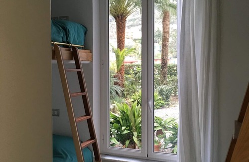 The house is incorporated into the villa and partly has its own independent structure with a view of the romantic garden already described by the poet Eugenio Montale, with the statue of Summer described in Ossi di Seppia, which earned him the Nobel Prize for Literature. At the entrance to the garden there is the Grottino delle Conchiglie where the poet Montale and his sister, as children, stuck the shells found in the sea - still visible - on the ceiling. The garden is furnished with tables, chairs and deck chairs. There is an outdoor shower with hot and cold water and a beautiful marble sink. The apartment has just been renovated and has high quality furniture and appliances, hot/cold air conditioning in all rooms, safe, garden and private parking.