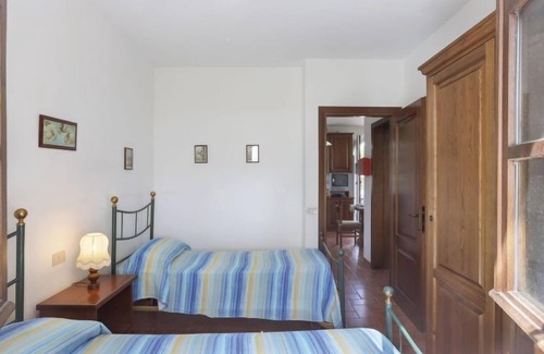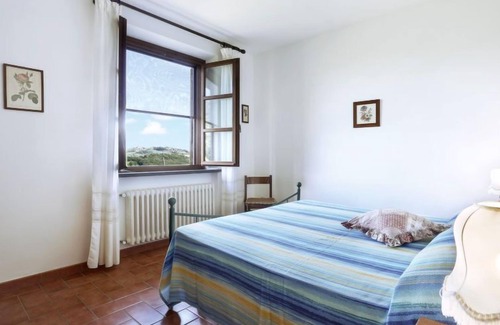 Resort "La Cerretella", built in 1800. 9 apartments in the residence. 6 km from the centre of Terricciola, 5 km from the centre of Laiatico, 45 km from the centre of Pisa, 43 km from the sea, in the countryside. For shared use: property 50 ha with trees, meadow, swimming pool (16 x 8 m, seasonal availability: 09.May. - 03.Oct.). Children's pool, outdoor shower, tennis (extra), table tennis, terrace, barbecue, children's playground. 400 m long motor access (via unmade road). Parking on the premises. Shop 5 km, supermarket 5 km, sandy beach "Cecina Mare" 43 km. The owner does not accept any groups.