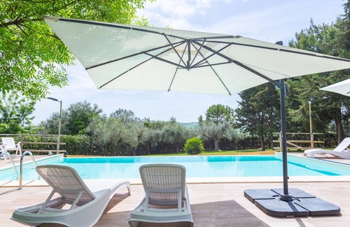 Very beautiful, rustic agricultural estate "Casale Vidorni", renovated, surrounded by fields and vineyards. 2 apartments in the property. 9 km from the centre of Casalbordino, 35 km from the centre of Lanciano, 24 km from the centre of Vasto, 17 km from the sea, in the countryside. For shared use: large, well-kept garden 3'000 m2 (fenced) with lawn and trees, swimming pool (11 x 5 m, depth 130 cm, seasonal availability: 15.Apr. - 15.Oct.) with internal staircase. Outdoor shower, terrace (50 m2), garden furniture, barbecue, children's playground (swing), pool maintenance by the owner/gardener. In the house: heating available only from 01.Nov. - 31.Mar bicycle rental. Parking on the premises. Supermarket 9 km, bus stop 5.2 km, railway station "Lido di Casalbordino" 17 km, sandy beach 17 km. Fishing possibilities 500 m. Nearby attractions: Dune 17 km, Lago sportivo. Please note: fishing [permit required] (extra) on request. Local sale of farm products.