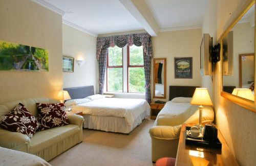 Located right next to Ilkley Riverside Garden, Ilkley Riverside Hotel offers rooms with attached bathroom with views of the River Wharfe and Ilkley Moor. With free parking and WiFi, this Yorkshire inn serves award-winning real ales and a full restaurant menu. Each room has a flat-screen TV, desk and tea and coffee facilities. All rooms have an en suite shower with hairdryer. A range of satisfying meals are served in the restaurant, including steak, mushroom and Guinness pie, and large Yorkshire puddings filled with roast beef, vegetables and gravy. There is also a selection of sandwiches, pizzas and vegetarian dishes. In the summer, you can dine on the patio overlooking the river, or in winter enjoy the warming open fire in the hotel bar. Ilkley Riverside Hotel is around 10 minutes’ walk from the town’s attractive center, home to the Ilkley Toy Museum and the King’s Hall Theater. Scenic walks can be enjoyed on the Dales Way, which covers 84 miles from Ilkley to Bowness-on-Windermere in Cumbria.