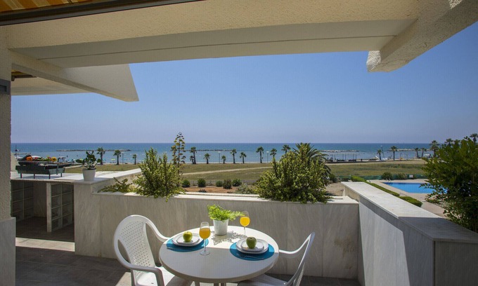 Larnaca Holiday Apartment - Location Location Location - Situated in one of the most sought after locations of Larnaca this spacious 1- bedroom beachfront apartment offers amazing sea views of the whole of Larnaca Bay great comfort, luxury and relaxation.