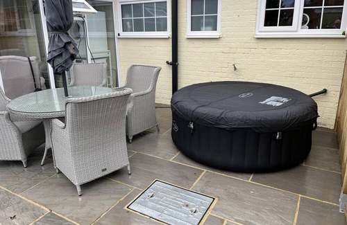 Conservatory leading to the back garden where you will find a bubbling hot tub with outdoor seating.