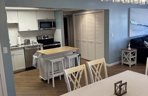 Welcome to South Seaside Park! This modern, spacious first floor end unit condo is one block from the beautiful White Sands Beach and located near the entrance to Island Beach State Park. Across the street from Ebbys, Berkeley Cut, Bum Rogers, Jerry’s, Island Beach Fish Co and more! Park your car in your reserved parking space and enjoy the island by walking to the beach, restaurants, and bars. Enjoy a short walk to the bay to watch the sunset, it is truly magnificent! Newly renovated with brand new kitchen, beds, and floors. Includes private outdoor space and wrap around patio. Private patio off of master bedroom. Great views of the surrounding area. Great for entertaining or a relaxing family beach vacation! Includes freshly cleaned linens and towels, beach gear, and four beach badges! Please contact me with any questions or if you would like to discuss dates! Discounts for extended rental periods offered.