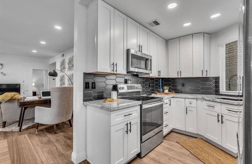 Perfect for couples and singles open to an extended stay. Work here, relax here. All neighboring communities a short distance. Midcentury design with high end decor - WiFi, Cable, 1 Covered Parking Space, 2 Pools (1 heated) and 2 Hot Tubs. BBQ located near the pool.