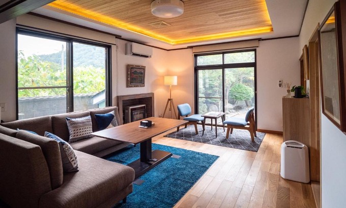 Food & DrinkTea/Coffee makerBathroomShampoo, Hairdryer, Toilet paper, Shower, Bathtub or shower, Towels, Body soap, Slippers, Bathtub, ToiletGeneralSoundproof, Interconnecting room(s) available, Air conditioning, Smoke Alarm, Heating, Hardwood or parquet floors, Private entrance, Trash cans, Fire extinguisher, Key accessKitchenWashing machine, Cleaning products, Dining table, Microwave, Kitchen, Kitchenware, Stovetop, Toaster, Electric kettle, Coffee machine, RefrigeratorLiving AreaSofa, Dining area, Desk, Sitting areaBedroomLinens, Wardrobe or closet, Childrens' cribsViewGarden view, Mountain view, Quiet street viewBuilding CharacteristicsDetachedMedia & TechnologyStreaming service (like Netflix)Room AmenitiesTatami (traditional Japanese flooring)Cleanliness & disinfectionHand sanitizer |