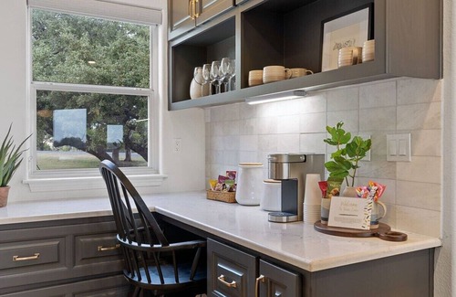 Country meets modern luxury at this lake front getaway. Our home presents a dreamy setting for your next hill country adventure. You'll be able to enjoy stunning lake views from the great room, spacious bedrooms, dining room and state-of-the-art kitchen. Enjoy quality bonding time with your guests in our game room and bar, on our Pickleball court, on our large decks, or enjoying a home-cooked meal and a movie in our open concept living area.