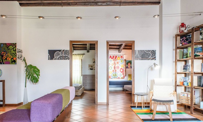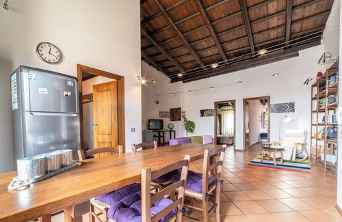 Large and bright apartment in the historic center of Milis located in the central Via Roma, modernly furnished and equipped with all comforts, just 20 minutes away from Oristano and the most beautiful beaches in the province. The apartment is designed to offer you maximum comfort. A flat screen TV, hairdryer, dishwasher, washing machine and special detergents, iron and ironing board, clothesline, covered space for hanging out in the internal courtyard, beach equipment are at your disposal. Upon request, a cot is available. The name of our apartment derives from the owner's historic Barberia, which you will have the opportunity to see on the right of the entrance. Let yourself be conquered by the modern and colorful style of our apartment. Neighborhood information The apartment is located in the center, a few meters from Palazzo Boyl and next to the pastry shop that makes the best zippole in the Oristano area. In the immediate vicinity there are also several bars, a pizzeria, a tobacconist, a pharmacy, the Post Office and the Bank. Within walking distance of the butcher and grocery stores. Milis is the perfect starting point for a holiday to discover the places and flavors of Oristano, Montiferru and Planargia. The accommodation is suitable for couples, families with children, cyclists, lovers of the sea, walking and trekking.. Extra: AIR CONDITIONING Free of charge , BIKE STORAGE Free of charge , BABY CHAIR Free of charge , HEATING Free of charge , LINEN AND TOWELS Free of charge , WASHING MACHINE Free of charge