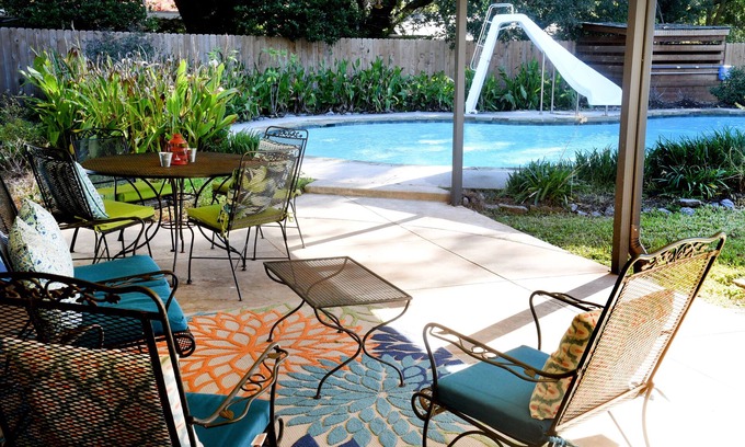 Spacious 2500SF 3/2 in Broadmoor Terrace. Centrally located on Old River, lovely views of the water, come play in the water, private pool, paddle in kayaks, canoe or fishing boat, dog friendly, a cook's kitchen, large dining table seats 8, big fenced backyard. Close to everything: grocery store, pharmacy, library, restaurants and parks. Plenty of parking, wood-burning fireplace (gas starter). Come and relax! Come and play!
