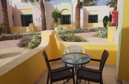 تمتع واستجم بشاليه عبارة عن غرفتين نوم ومطبخ صغير وحمام وستاليت في قرية ميراج باي مصنفة 5 نجوم بها اكوا بارك ومسابح وبها شاطئ رملي ومناظر خلابة جميلة جدا. البحر به مناظر وشعب مرجانيه للمشاهدة